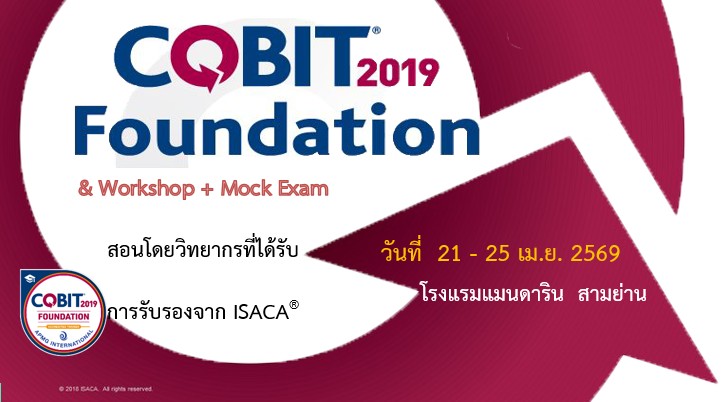 COBIT2019 Foundation & Workshop + Mock Exam สถานะหลักสูตร: เปิด 21 เมษายน 9:00 am - 4:00 pm โรงแรมแมนดาริน สามย่าน 662 ถนนพระรามที่ 4 แขวงมหาพฤฒาราม, เขตบางรัก, กรุงเทพมหานคร, Thailand