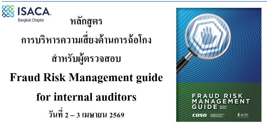 Fraud Risk Management for Internal Auditors สถานะหลักสูตร: เปิด 2 เมษายน 9:00 am - 3 เมษายน 4:00 pm Emerald Hotel Map 99/1 Rachadapisek Road, Din Daeng, Bangkok 10400, Thailand